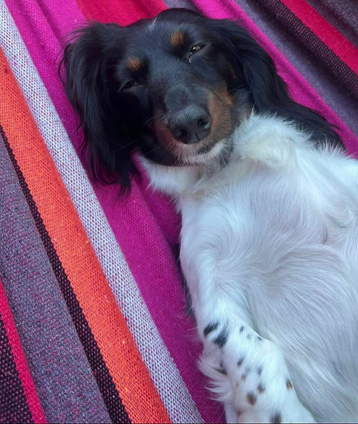 Birdie- My sweet little rescue girl. She is the black and tan piebald. I stumbled across her online being advertised as a pregnant dachshund. I couldn't let her go knowing what her future might hold. I picked her up and first thing took her to the vet. Thankfully false pregnancy. She is way too small to ever become a momma. She is now fixed and my baby forever.